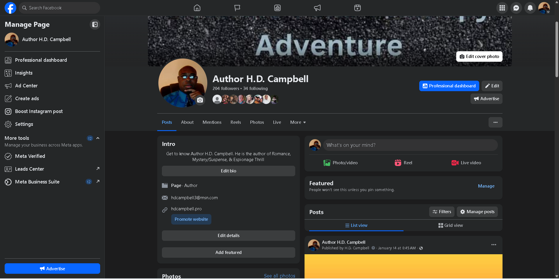 Personal page where you can get to know me personally. Here you will get to know about me and my books. Here will be the latest information about H.D. Campbell Productions, Hard Drive Publishing, H.D. Television and every facet of the literary and journalism world.